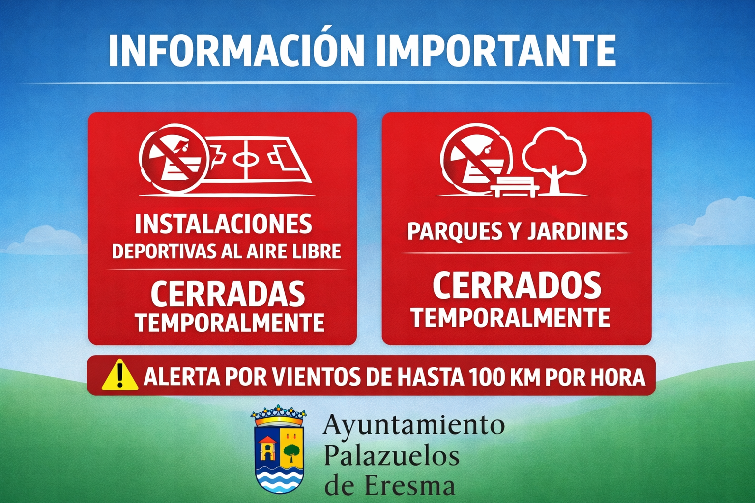 Estimados vecinos y vecinas, El Ayuntamiento de Palazuelos de Eresma informa de que, ante la activación de una alerta por fuertes vientos con rachas de hasta 100 km/h,…